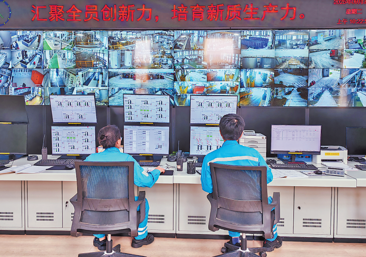 在贵港海螺台泥新材料科技有限公司中控室里◈✿✿ღ,工作人员正通过大屏幕紧盯各生产环节的实时情况◈✿✿ღ。全媒体记者 姜佳坤 摄
